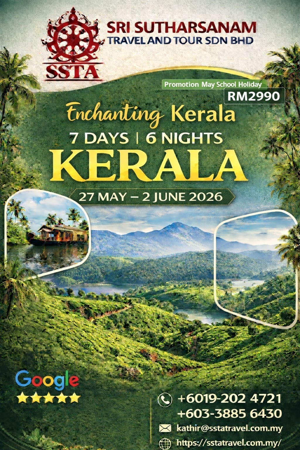 ✓ Two way air ticket from Kuala Lumpur to Cochin with 20kg baggage.